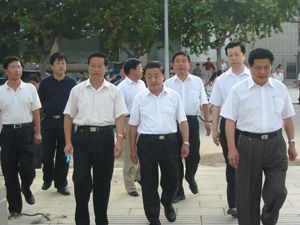 2004年8月山東省省長(zhǎng)韓寓群同志視察指導(dǎo)工作 左一為集團(tuán)公司董事長(zhǎng)徐鵬強(qiáng) |