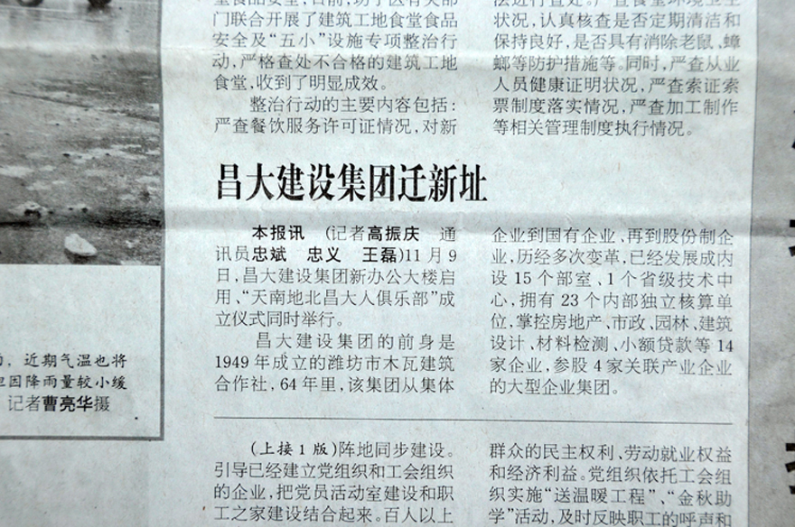 2013年11月09日,集團(tuán)喬遷至高新區(qū)健康東街6999號(hào),濰坊日?qǐng)?bào)、濰坊晚報(bào)刊登集團(tuán)喬遷慶典的報(bào)道。