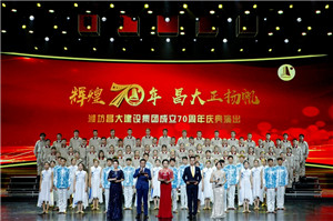 櫛風(fēng)沐雨砥礪行,春華秋實滿庭芳。2019年10月16日晚,慶祝集團70華誕文藝晚會在濰坊文化藝術(shù)中心大劇院隆重上演。 集團高管層領(lǐng)導(dǎo)徐鵬強、朱九洲、穆乃杰、姜建魯、閆鵬、房海、劉雁冰、張學(xué)智、吳杰出席。黨委書記、董事長徐鵬強代表領(lǐng)導(dǎo)班子致辭,表達了對黨的感恩之情。感謝各級政府和社會各界的大力支持,感謝一代一代昌大人的砥礪前行和奮斗,感謝昌大員工家屬的無私奉獻。集團技術(shù)負責(zé)人、商務(wù)經(jīng)理及以上骨干人員現(xiàn)場觀看演出。 集團特別感謝濰坊市歷屆黨委和政府一直以來對昌大的關(guān)愛和支持,特邀幫助昌大走出困境實現(xiàn)良性發(fā)展的黃濰連、劉偉、潘強等市里的老領(lǐng)導(dǎo)代表,特邀集團合資、合作等有關(guān)方面的代表,特邀集團改制前擔(dān)任過集團正職的部分老領(lǐng)導(dǎo)以及改制后擔(dān)任過集團領(lǐng)導(dǎo)后來退下來的老領(lǐng)導(dǎo),特邀企業(yè)發(fā)展之初老領(lǐng)導(dǎo)的家屬代表,特邀集團榮獲省和全國勞動模范代表,特邀集團基層單位經(jīng)理助理、集團總部全體、集團中層以上人員的家屬代表出席觀看文藝演出。 主題為“輝煌七十年?昌大正揚帆”的慶典晚會,在一曲《在燦爛的陽光下》歌舞中拉開帷幕。晚會總體分為“致敬昨天?致敬今天?致敬未來”三個篇章,共十七個節(jié)目。無論是歌頌昌大人的歌曲《堅守》,還是謳歌關(guān)心昌大各界的相聲《非常嘉賓》,無論是《流光溢彩》的城市脈動,還是訴說過去的《往事只能回味》,無論是描寫建筑人的《我們和城市在一起》,還是表現(xiàn)昌大建設(shè)鐵軍精神的《城市筋骨》,無論是音詩畫般的《昌大一家人》,還是表現(xiàn)昌大員工情懷的《多想在平庸的生活擁抱你》,昌大人都在《致敬昨天》、《致敬今天》、《致敬未來》朗讀聲中盡情釋懷。昌大七十年,我們在《萬紫千紅分外嬌》的環(huán)境中奮發(fā),我們在《我和我的祖國》歌聲中與共和國一起成長。70年的奮斗,我們凝聚了《善建者的力量》。 昌大輝煌七十年,我們用頒發(fā)《昌大建設(shè)七十年》一書的隆重禮儀,揭開昌大歷史那頁頁篇章、續(xù)寫未來的美好與輝煌。 我們禮贊新中國七十年壯麗篇章;我們禮贊昌大七十年的美麗詩篇。七十年,我們感恩黨的陽光沐??;我們感謝社會各界支持;我們感激昌大歷代員工;我們感慨昌大歷久彌新。 晚會讓昌大更加凝聚起了邁向新時代的力量,吹響了百年昌大的號角,讓我們“團結(jié)奮斗,做新時代的建設(shè)者”! 晚會由濰坊電視臺內(nèi)專業(yè)人士執(zhí)導(dǎo)。濰坊電視臺、濰坊人民廣播電臺的嘉賓參與晚會主持和有關(guān)節(jié)目演出。 晚會現(xiàn)場,濰坊新聞網(wǎng)進行了現(xiàn)場直播,半島網(wǎng)、今日頭條、騰訊視頻、優(yōu)酷、搜狐、愛奇藝、第一視頻、天天快報等進行了視頻轉(zhuǎn)播和錄播;大眾網(wǎng)濰坊、半島網(wǎng)、今日頭條、天天快報、光新聞、濰坊早讀、濰坊日報、濰坊晚報等持續(xù)進行文字播報和轉(zhuǎn)發(fā)。 慶祝集團七十華誕的大型活動,集團高管層領(lǐng)導(dǎo)正確決策和運籌,各活動團隊圍繞目標和中心任務(wù)全力推進、團結(jié)協(xié)作,順利完成各項活動,達到了通過活動凝聚企業(yè)內(nèi)生動力、提升昌大品牌社會影響力、激勵廣大青年員工為未來而奮發(fā)的目的。在此,集團向所有參與活動的單位和個人表示感謝!