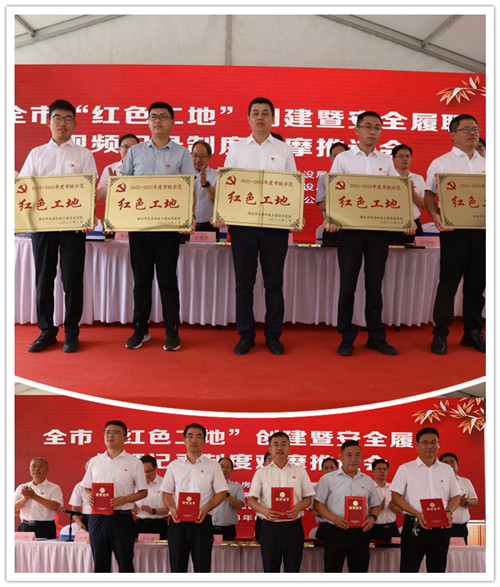 2023年6月28日上午,全市“紅色工地”創(chuàng)建暨安全履職視頻記錄制度觀摩會在集團(tuán)四建公司總承包施工的濰坊市人民醫(yī)院內(nèi)科院區(qū)項目現(xiàn)場舉辦。山東省建設(shè)工程質(zhì)量安全中心主任王華杰,濰坊市住建局黨組書記、局長馬冰,濰坊市委組織部組織二科科長李連偉,濰坊市直機(jī)關(guān)工委組織部四級調(diào)研員李桂波,濰坊市住建局黨組成員、建筑業(yè)發(fā)展服務(wù)中心黨委書記、主任許增賢,濰坊市奎文區(qū)委常委、組織部長田學(xué)剛,濰坊市建筑業(yè)發(fā)展服務(wù)中心專職副書記、紀(jì)委書記彭玉剛,濰坊市奎文區(qū)住建局黨組書記、局長張文干等在主席臺就座;各縣市區(qū)、市屬有關(guān)開發(fā)區(qū)住建局代表、“紅色工地”創(chuàng)建工作先進(jìn)單位、優(yōu)秀班組、先進(jìn)個人及優(yōu)秀示范項目代表共100余人參加會議。集團(tuán)公司紀(jì)委書記穆乃杰受黨委書記、董事長徐鵬強委托出席會議致歡迎辭并作了題為《黨建引領(lǐng)方向、紅色鑄就經(jīng)典》的典型交流發(fā)言。