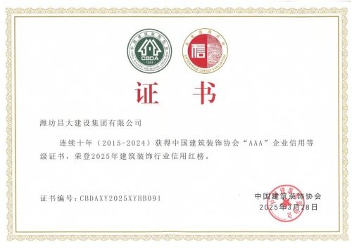 2025年3月28日,中國建筑裝飾協(xié)會(huì)在武漢召開了首屆大國裝飾可持續(xù)發(fā)展大會(huì)。會(huì)上發(fā)布了建筑裝飾行業(yè)信用建設(shè)十年發(fā)展報(bào)告,公布了連續(xù)十年(2015-2024)榮獲中國建筑裝飾協(xié)會(huì)AAA信用等級企業(yè)名單及2025年度建筑裝飾行業(yè)信用紅榜獲獎(jiǎng)名單,并頒發(fā)了榮譽(yù)證書。