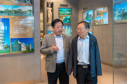 全市座談會后,調(diào)研組成員、省住廳二級巡視員李煜,物業(yè)管理處處長徐世棟、四級調(diào)研員譚子龍在濰坊市建筑業(yè)發(fā)展服務(wù)中心主任翟文成陪同下深入集團公司實地調(diào)研。集團總裁朱九洲陪同。調(diào)研組參觀了企業(yè)展館和建筑史館,詳細了解了集團的發(fā)展歷程與企業(yè)文化。