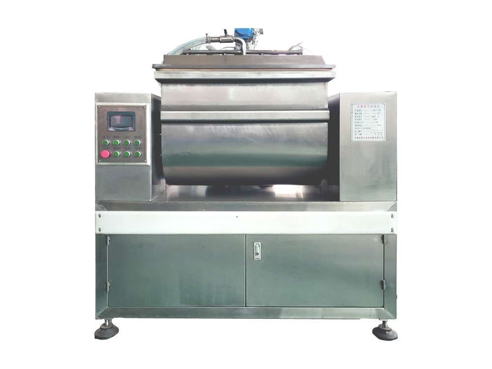 →臥式真空和面機系列  →型號50/75/100/150/200/300型  →功能  主要用來和制餃子皮、餛飩皮、鮮食面、水煮面、掛面等,若更換攪拌器,可適用于速凍行業(yè)的各種面食制品的加工?!  厣 ?、配備智能觸控顯示屏,參數(shù)自由設(shè)定,可手動攪拌、可一鍵攪拌。并可根據(jù)工藝設(shè)定和面時間和真空度?! ?、設(shè)備由PLC控制,可實現(xiàn)自動起蓋、自動計量加水、自動翻斗、自動進粉、抽真空和面(拌粉)、自動排面功能?! ?、獨特的密封結(jié)構(gòu),有效防止面團受到污染,進一步提高食品安全?! ?、和面過程在真空負壓下進行,使面粉中的蛋白質(zhì)在短時間、充分的吸收水分,形成面筋網(wǎng)絡(luò),從而使面團外表光滑、內(nèi)部結(jié)構(gòu)均勻,透明度高、口感好?! ?、可定制面斗冷卻系統(tǒng),使成品面團溫度恒定,確保批量生產(chǎn)的產(chǎn)品質(zhì)量穩(wěn)定。  6、設(shè)備主體采用不銹鋼制造,符合現(xiàn)行有關(guān)食品衛(wèi)生標準?!  饕夹g(shù)參數(shù)產(chǎn)品型號額定容量(kg)攪拌轉(zhuǎn)速(rpm)主電機(kW)副電(kW)外形尺寸(長×寬×高)ZHW  50型50板式40 攪棒44/887.51.11470×932×1483ZHW  75型75板式40 攪棒44/88111.851440×890×1655ZHW 100型100板式40 攪棒44/88111.851440×890×1794ZHW 150型150板式40 攪棒44/88221.851764×1070×1815ZHW 200型200板式40 攪棒44/88221.851964×1070×1815ZHW 300型300板式40 攪棒44/883432074×1170×2022板式攪拌器滾杠-真空油條包子狼牙棒攪拌器