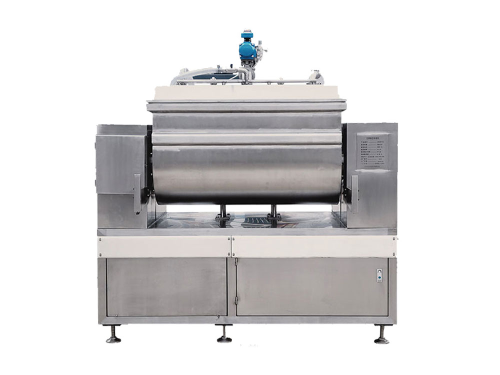→臥式真空和面機系列  →型號50/75/100/150/200/300型  →功能  主要用來和制餃子皮、餛飩皮、鮮食面、水煮面、掛面等,若更換攪拌器,可適用于速凍行業(yè)的各種面食制品的加工?!  厣 ?、配備智能觸控顯示屏,參數(shù)自由設(shè)定,可手動攪拌、可一鍵攪拌。并可根據(jù)工藝設(shè)定和面時間和真空度。  2、設(shè)備由PLC控制,可實現(xiàn)自動起蓋、自動計量加水、自動翻斗、自動進粉、抽真空和面(拌粉)、自動排面功能?! ?、獨特的密封結(jié)構(gòu),有效防止面團受到污染,進一步提高食品安全?! ?、和面過程在真空負壓下進行,使面粉中的蛋白質(zhì)在短時間、充分的吸收水分,形成面筋網(wǎng)絡(luò),從而使面團外表光滑、內(nèi)部結(jié)構(gòu)均勻,透明度高、口感好。  5、可定制面斗冷卻系統(tǒng),使成品面團溫度恒定,確保批量生產(chǎn)的產(chǎn)品質(zhì)量穩(wěn)定?! ?、設(shè)備主體采用不銹鋼制造,符合現(xiàn)行有關(guān)食品衛(wèi)生標準?!  饕夹g(shù)參數(shù)產(chǎn)品型號額定容量(kg)攪拌轉(zhuǎn)速(rpm)主電機(kW)副電(kW)外形尺寸(長×寬×高)ZHW  50型50板式40 攪棒44/887.51.11470×932×1483ZHW  75型75板式40 攪棒44/88111.851440×890×1655ZHW 100型100板式40 攪棒44/88111.851440×890×1794ZHW 150型150板式40 攪棒44/88221.851764×1070×1815ZHW 200型200板式40 攪棒44/88221.851964×1070×1815ZHW 300型300板式40 攪棒44/883432074×1170×2022板式攪拌器滾杠-真空油條包子狼牙棒攪拌器
