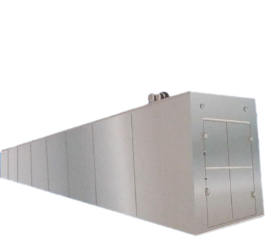 本機為隧道式多層干燥爐,爐內(nèi)干燥工作面分為10層,由10臺變頻調(diào)速電機分別控制,能理想的實現(xiàn)米雪餅餅坯的干燥。